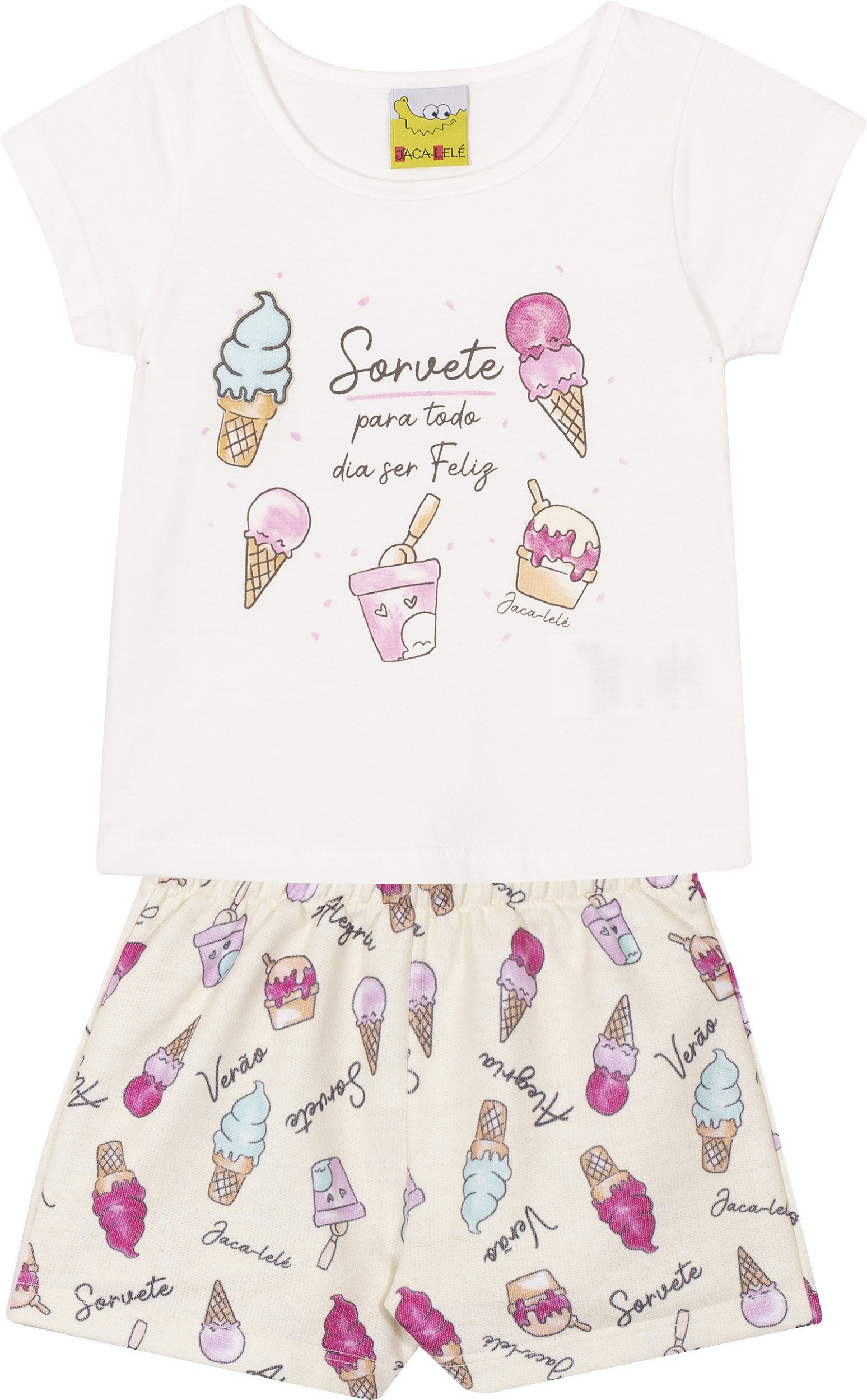 Esse conjunto é a combinação perfeita para um look delicado e divertido. Pronto para explorar o melhor da estação com muito estilo, ele traz blusa soltinha que é pura fofura e conforto. E não poderíamos esquecer do shorts super divertido, com uma estampa cheia de sorvetinhos para alegrar ainda mais o visual com tênis!