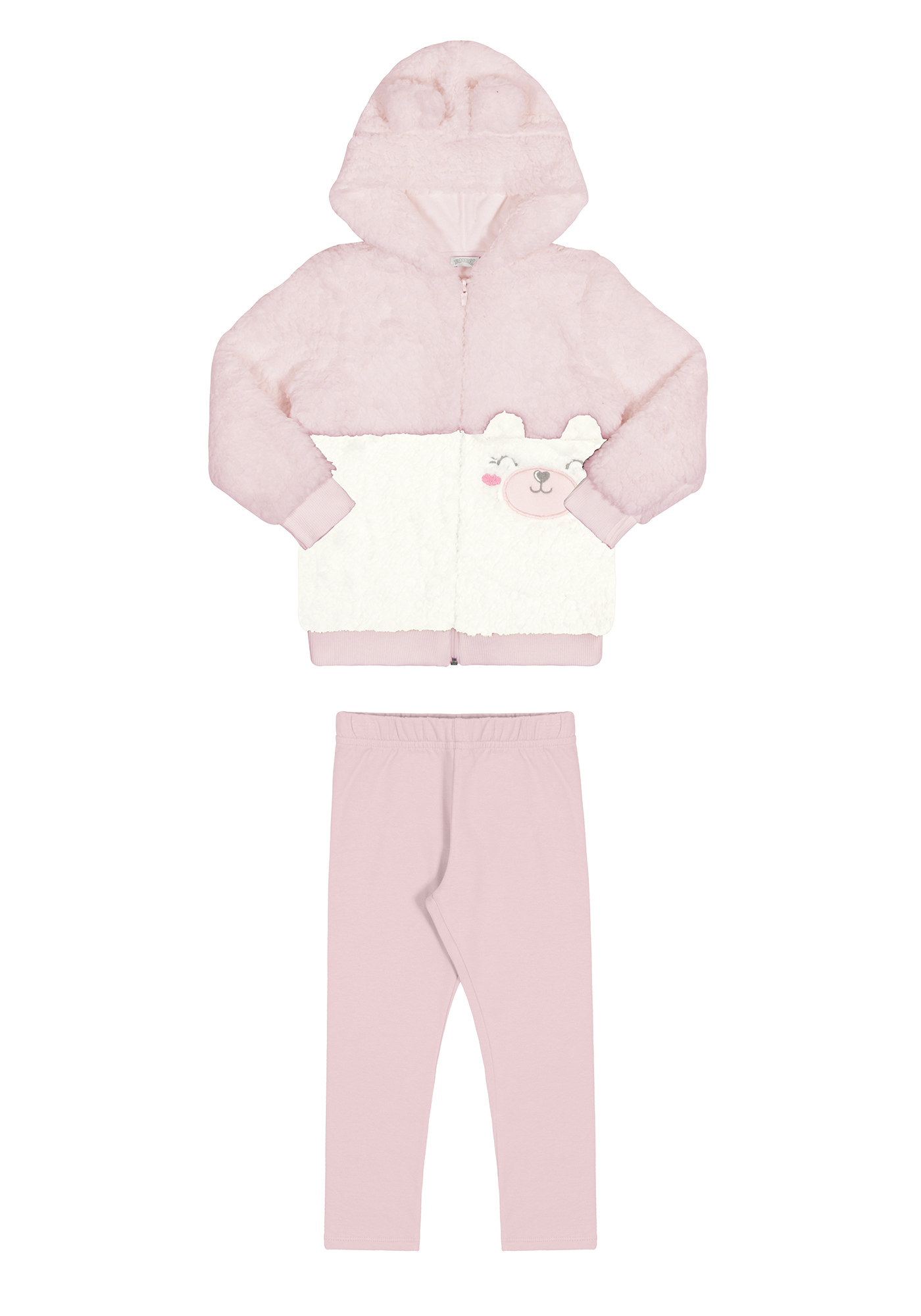 Combinando a doçura de um ursinho com a textura macia do pelo na jaqueta, este conjunto é como um abraço quentinho de amor no inverno da sua pequena! As orelhinhas no capuz estimulam ainda mais a fantasia. Já calça confortável é linda e fica linda com coturnos.
