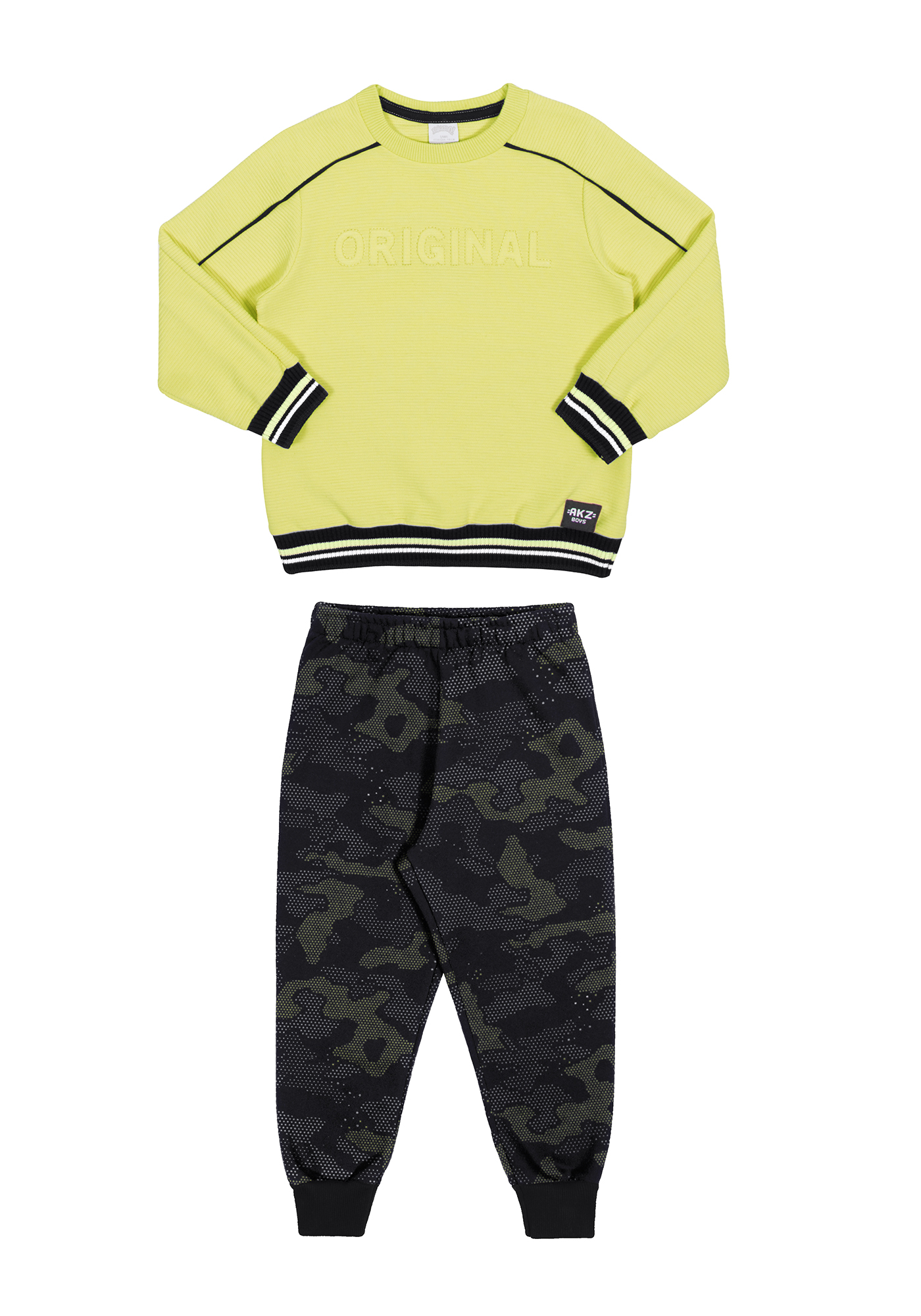 Transforme esse conjunto Alakazoo com blusão texturizado no preferido da vez! A calça jogger camuflada tem padronagem que dá a sensação de uma tela por cima, como se seu pequeno estivesse pronto para uma missão secreta. Além de descolado, é também incrivelmente confortável! Tênis deixa o visual completo.