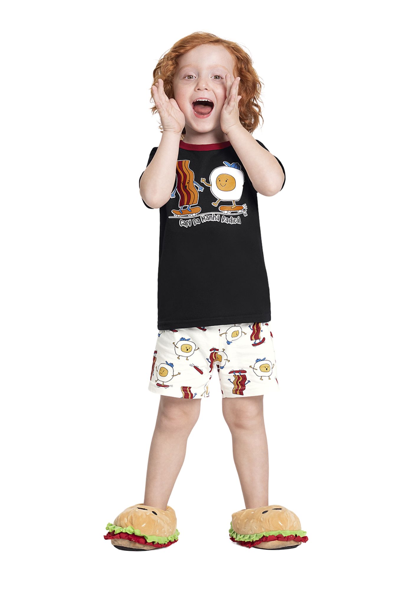 Cor: Preto com estampa colorida de Café da Manhã (Detalhes da estampa brilham no escuro)