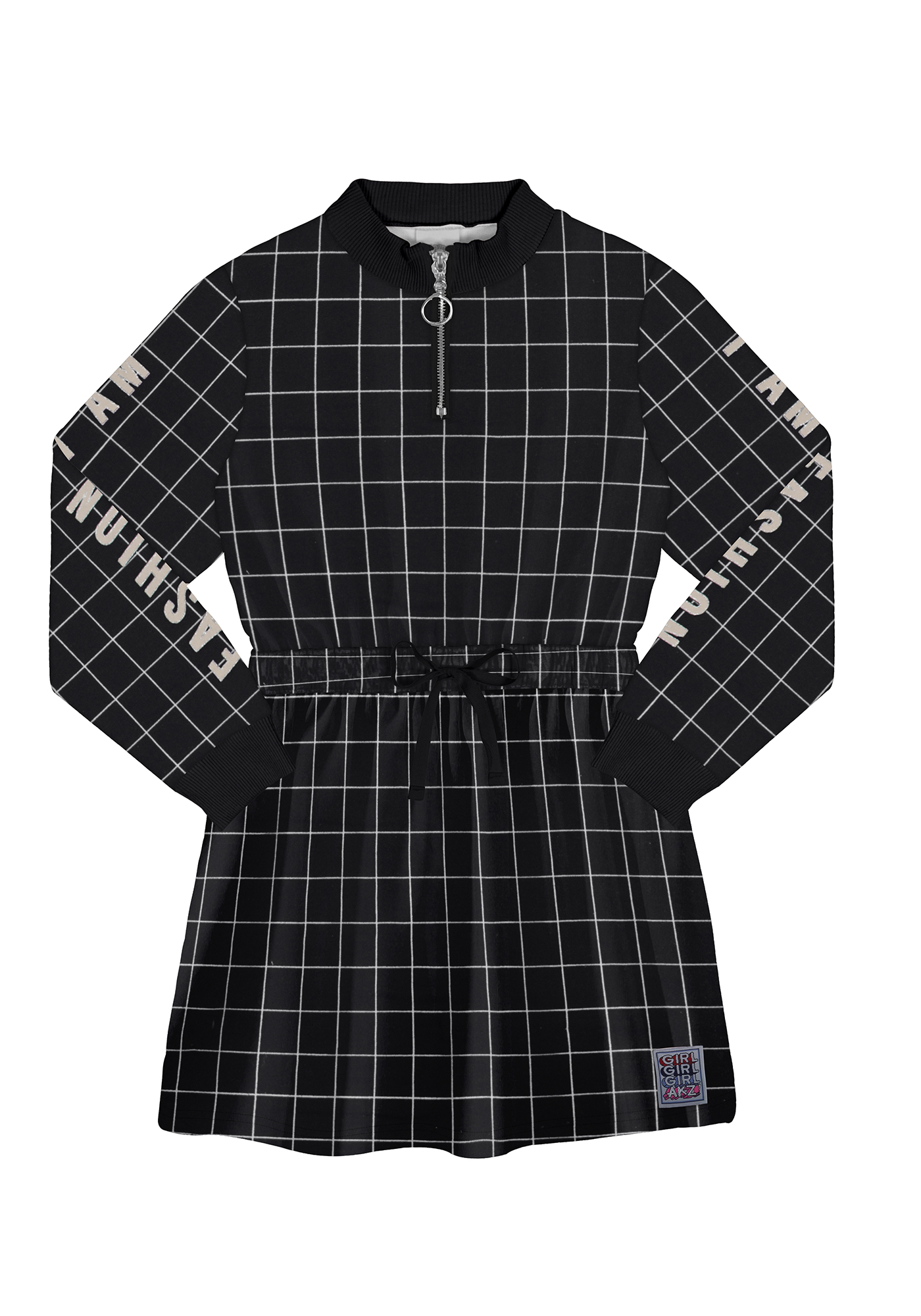 Vestido evasê de mangas longas que é a escolha certa para as meninas moderninhas! Com sua gola alta com zíper e feito em Moletom quentinho e confortável, é ideal para as brincadeiras da turminha. A estampa xadrez Grid adiciona um toque divertido e atual. Combine com tênis e meia-calça para um visual incrível.